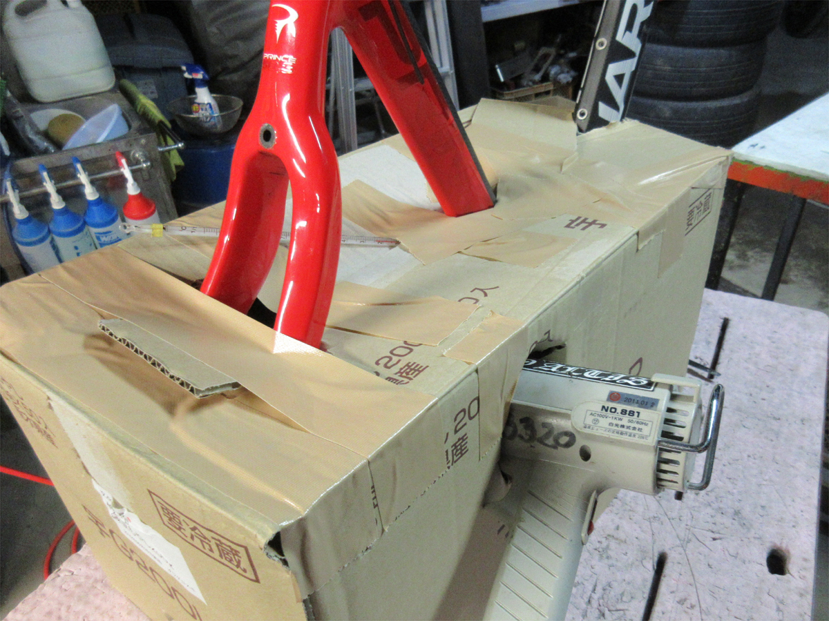 梅雨の合間に自転車のカーボンフレーム補修。