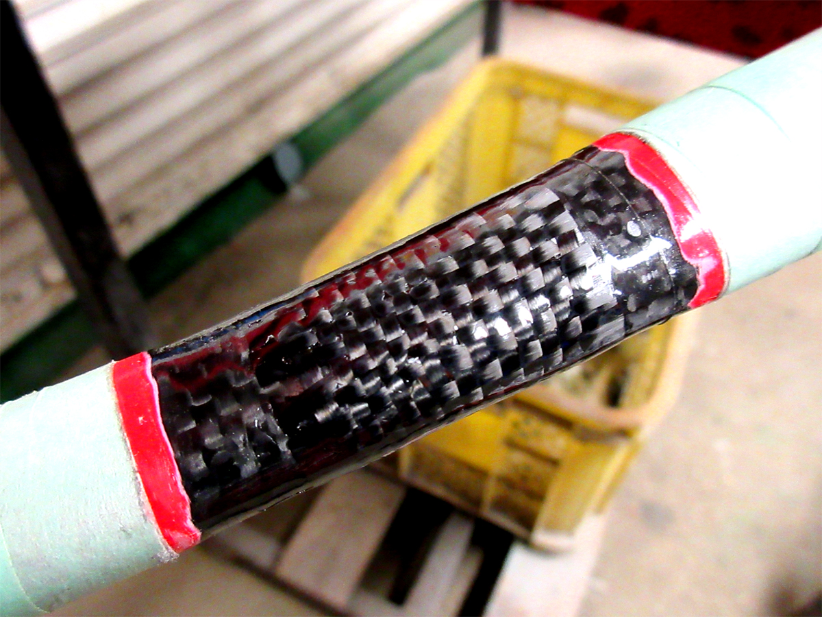 カーボンクロスを一枚、患部を覆えるサイズ程度を張り込みます。