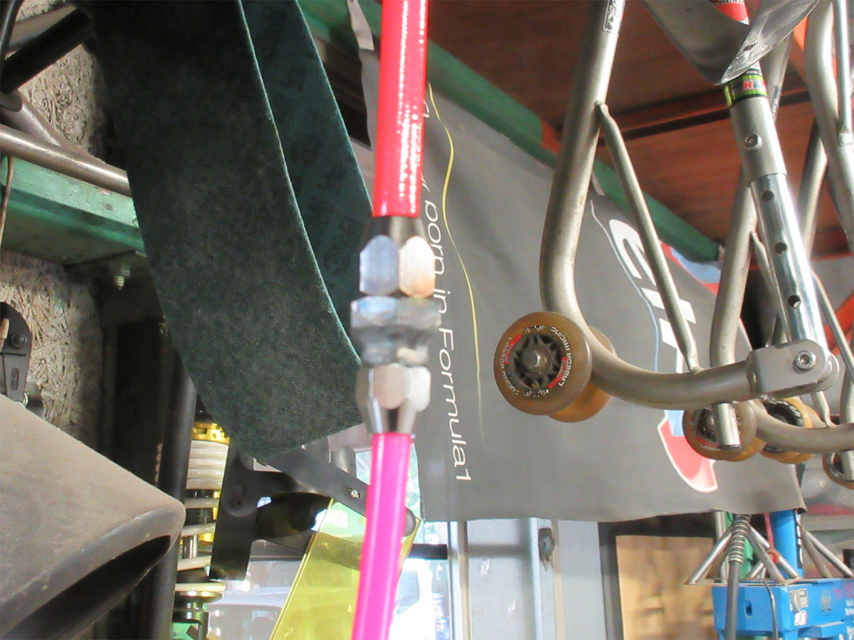 工場内のエアホースに細めのスパイラルタイプホースを