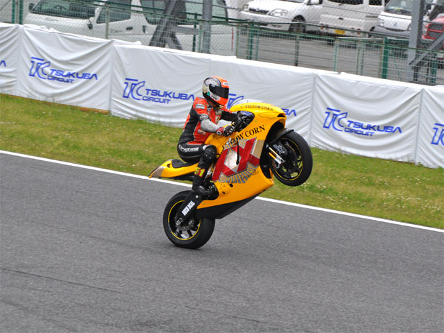 夕刻、デモ展示車両を長井選手より借り受けて