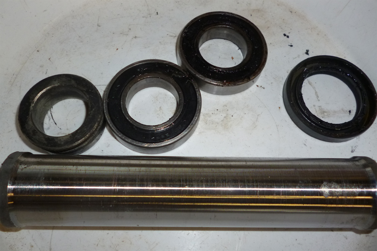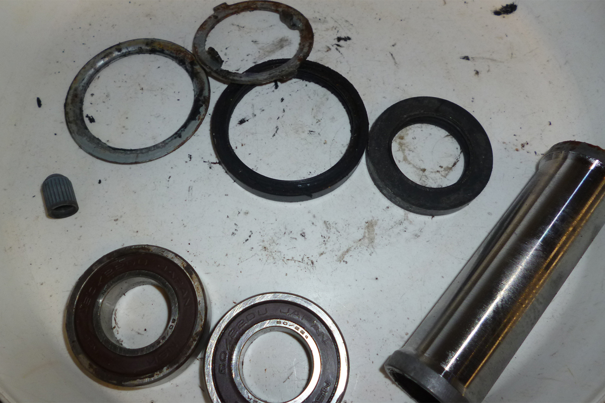 FRホイルのベアリングやらシールやらカラー類は分解します。