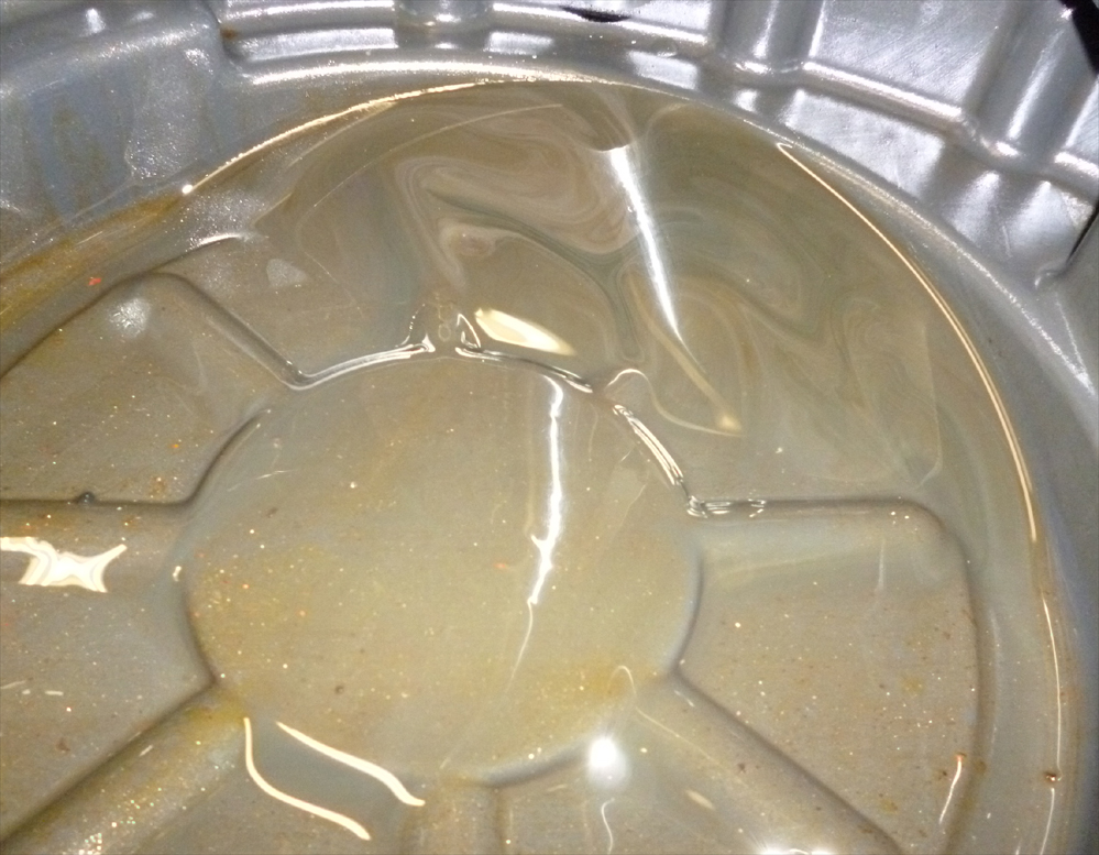 左右のフォークから抜いたオイル、汚れていて量も少ないですね。
