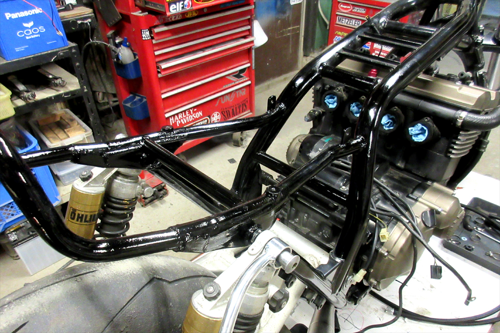 純正のタンクステーなんかも全部切り飛ばしてます。
