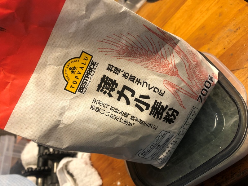 小麦粉を手に取って「パンパ~ン」とやればスルスル装着出来る。