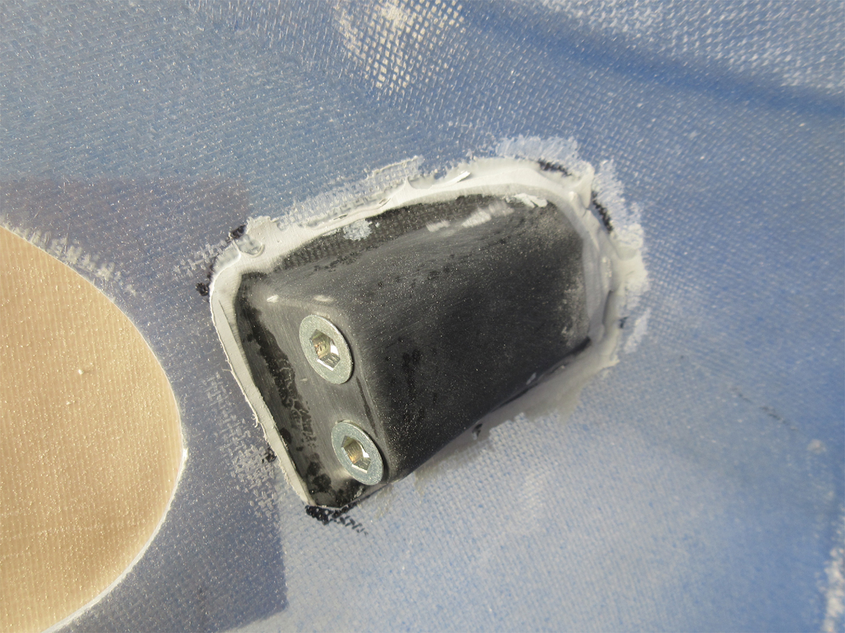位置決めのマーキング周辺にはエポキシで固定されてるステーとの