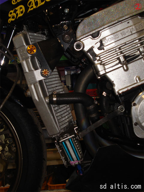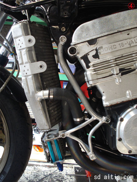 ②コリャ、冷却系のステーを新規製作する事で兼用式に。