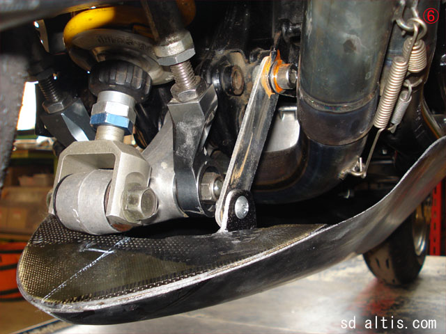 ⑥アンダーカウルは三箇所固定で、後部の取付部分はこんな感じに・・・。