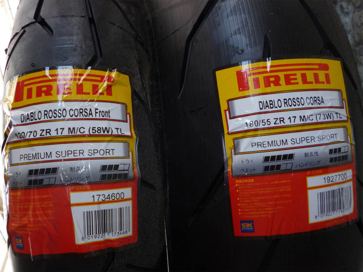 タイヤ交換は、ピレリ製ディアブロロッソコルサを選択。