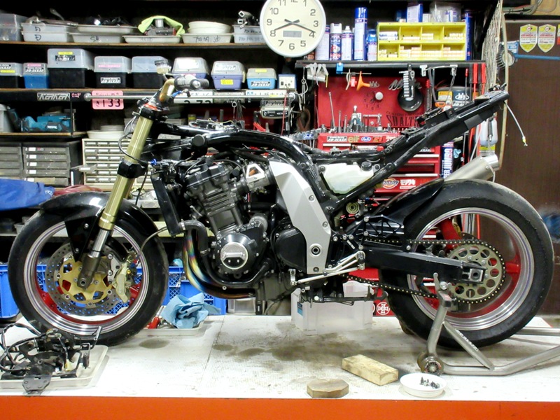 キャブの脱着や冷却通路洗浄の為にカウルは外して作業。