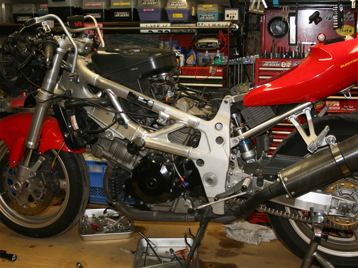 タンクチルト出来る車体ですが、重整備にはちょい邪魔ね。
