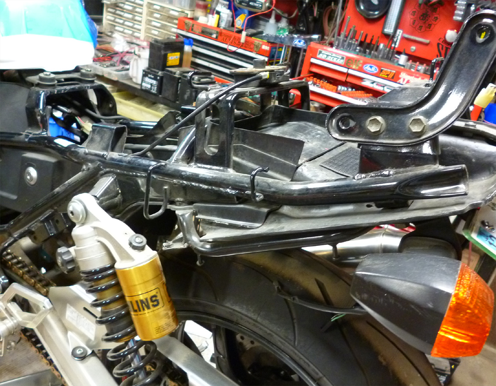 スイングアームペイントとスタンドフック設置。