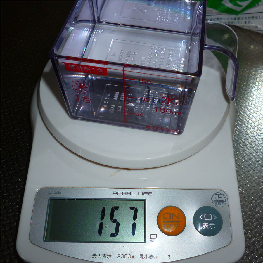 無洗米二合に対して、水450mlがパーソナルベストです。。。