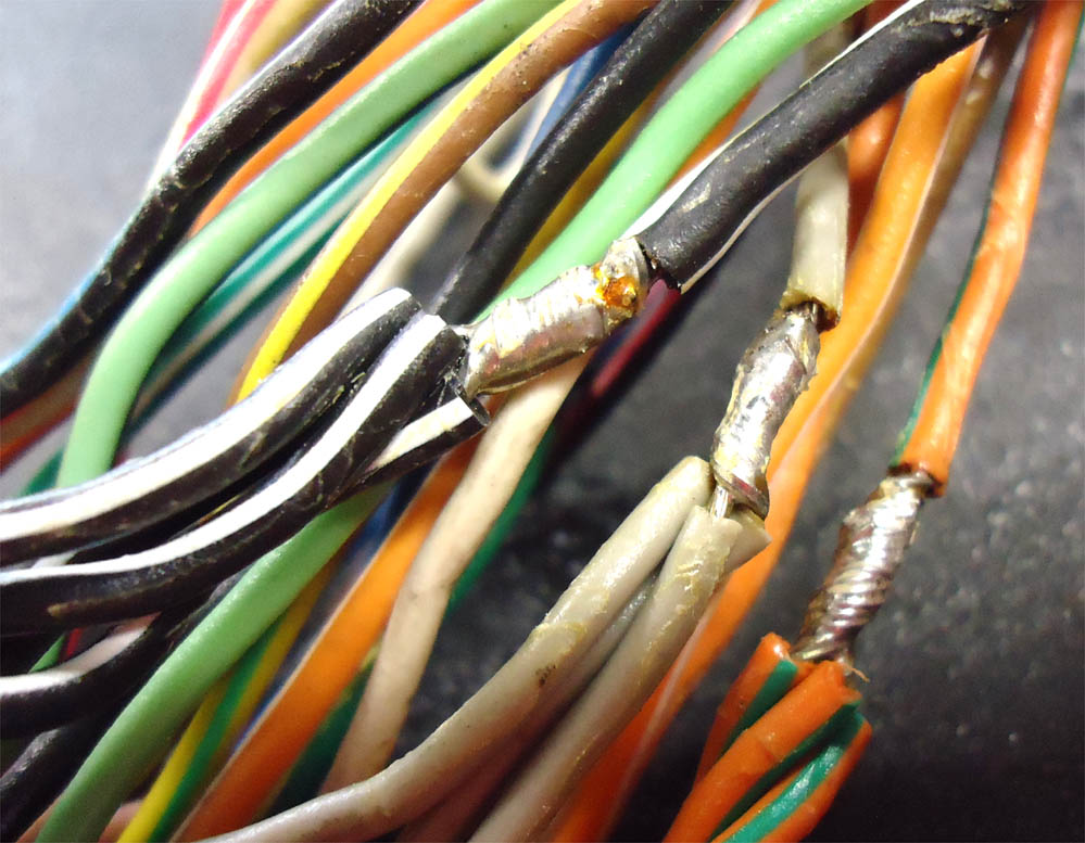 まずは現状確認の為に、配線テープを剥いて糊落しして綺麗にします。