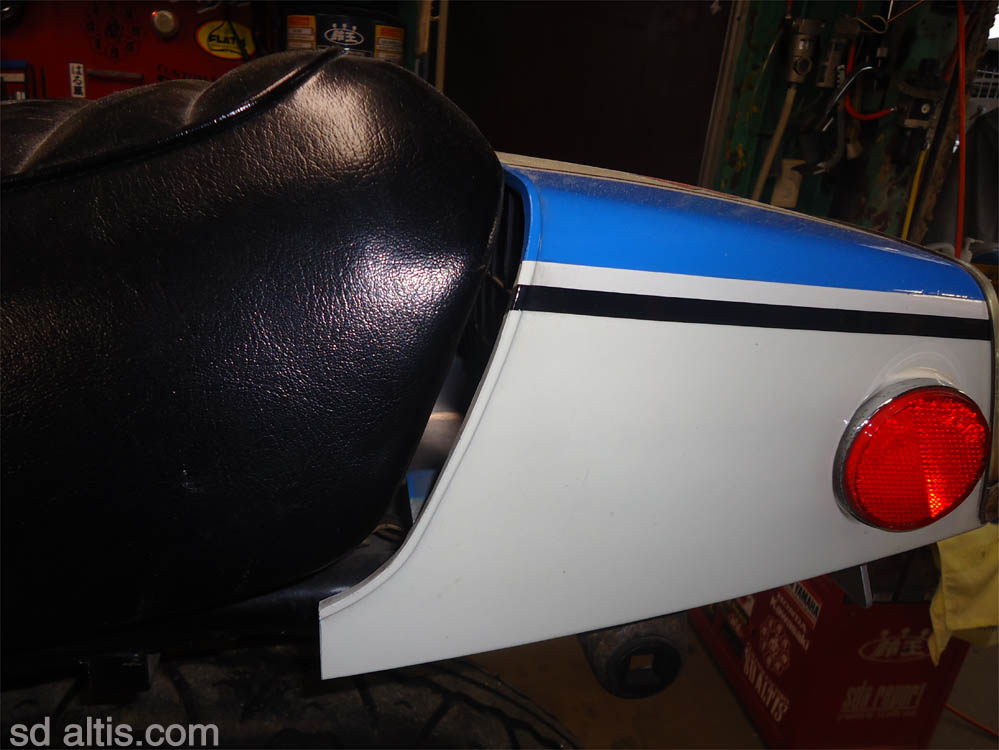 こんな場合には柔軟な思考で、カウルとシートの固定位置調整で対応出来ます。