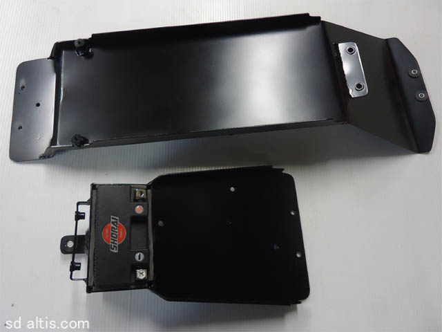 小物入れ兼インナーフェンダーと電装プレートの二分割構造。