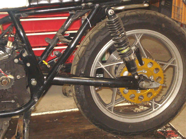 スイングアーム側の取付部分のカラー、飛び出しています。