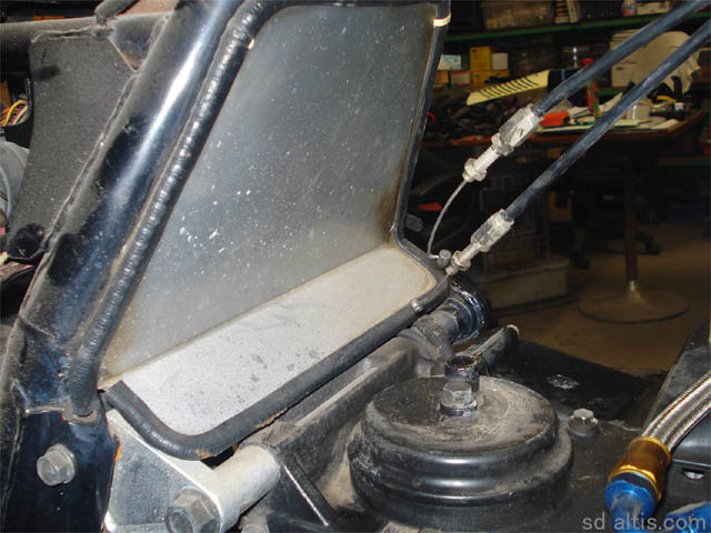 サスをレイダウン装着するので取付位置の加工とか