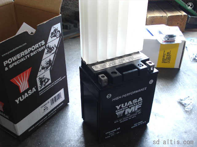 ②バッテリーはMFタイプへ、レギュも対策品に交換します。