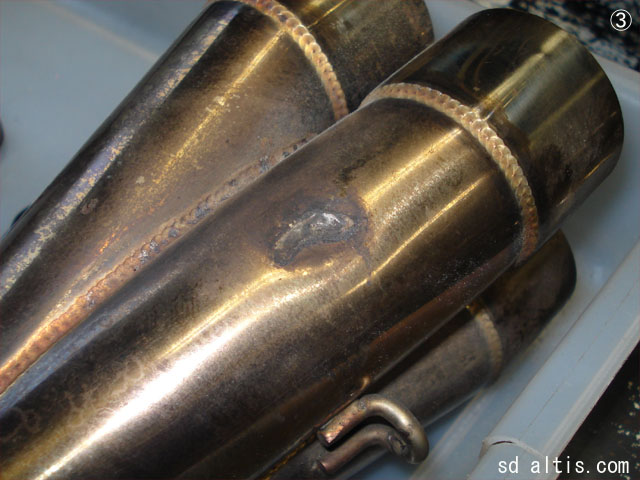 ③オイルとエレメントの交換の為にマフラーを外します。