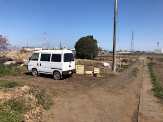 嫁さんと昼飯食べて帰ってきた所、ウチの裏手敷地に見慣れない軽バンが止まってる。