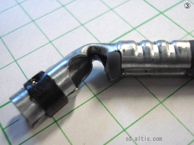 ④ステータハーネスはカッチカチで、ちょい曲げると「ポキッ」ってなる。