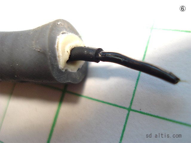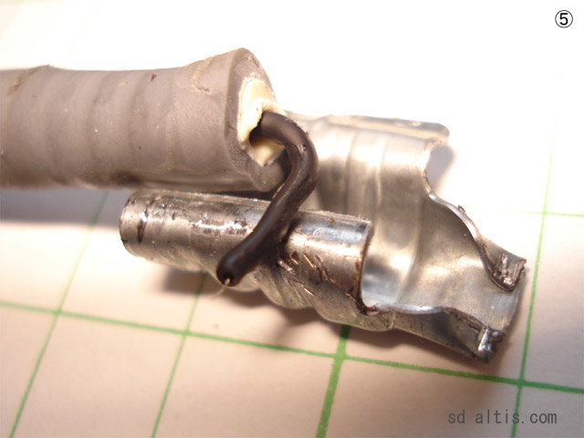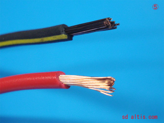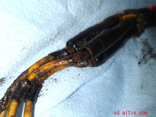⑤画像上の黒/黄はアース線で、画像下は新品の線。