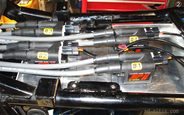 ①シート下前部はウオタニコイル四個で埋まってしまいます。