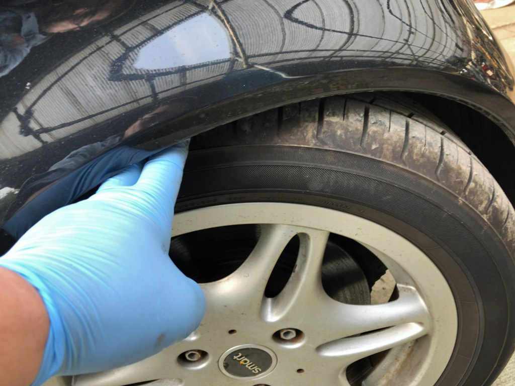 155/65タイヤだと、フルロックでゴリゴリ干渉する。