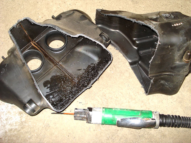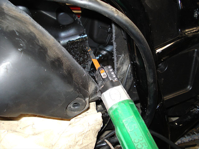 切りカス対策の為にエンジン周辺を養生してから切断作業。
