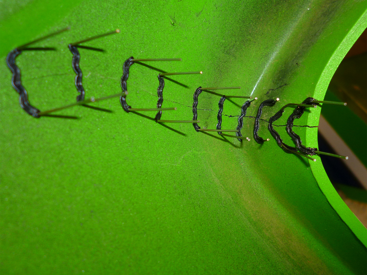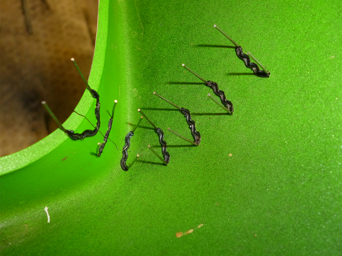裏面からピンの溶着。