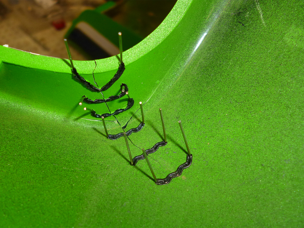 割れたカウルの補修。