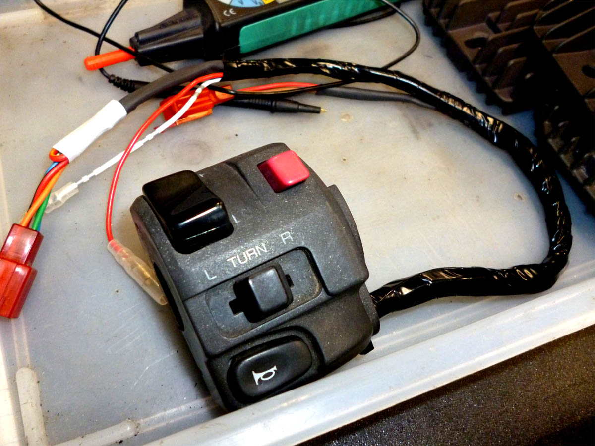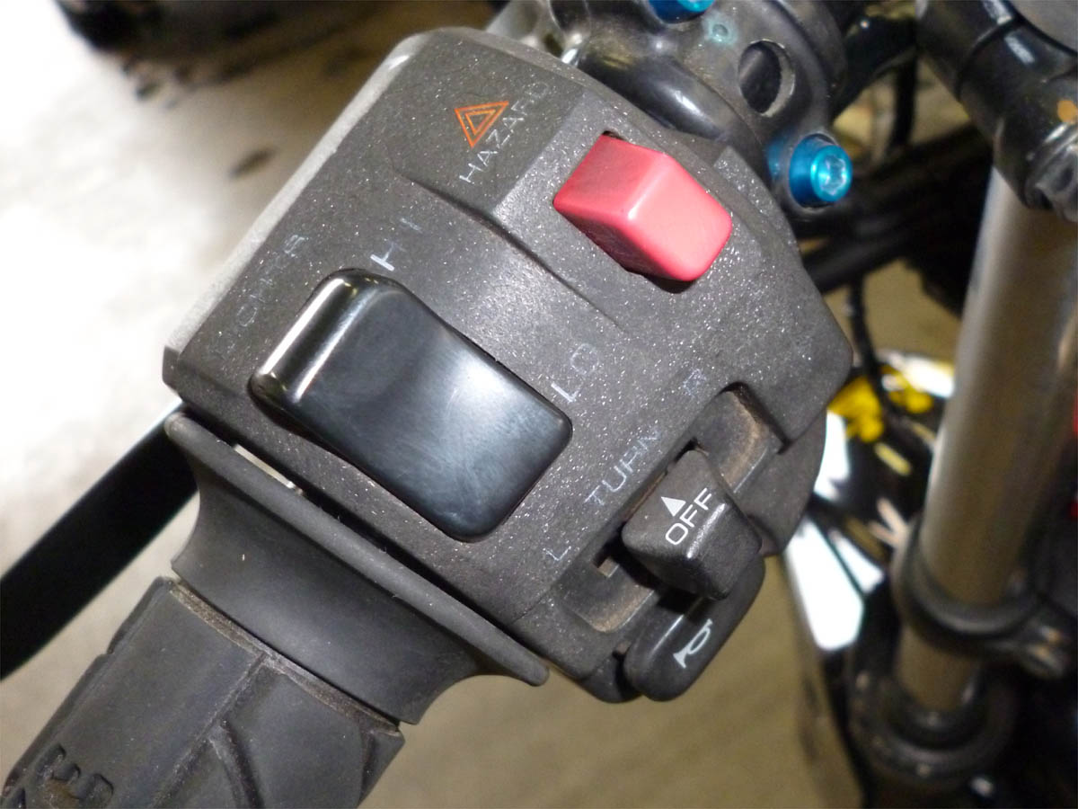 左のスイッチボックスは、純正じゃなくてZRXシリーズの物を流用しています。