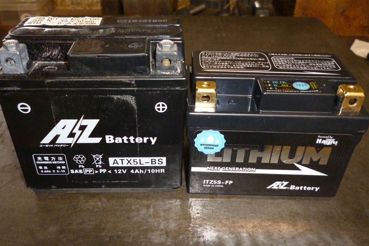 画像右が、AZリチウムバッテリー。