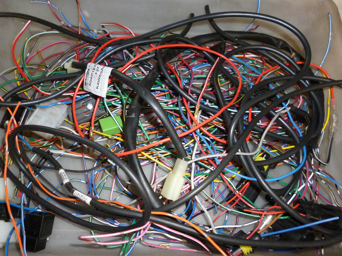 純正のメインハーネスを車体から引っ張り出して、必要分解析します。