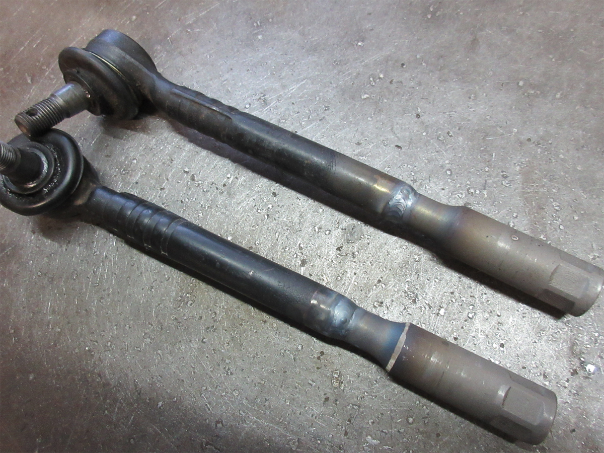 純正タイロッドを途中でカットして延長溶接加工しますが