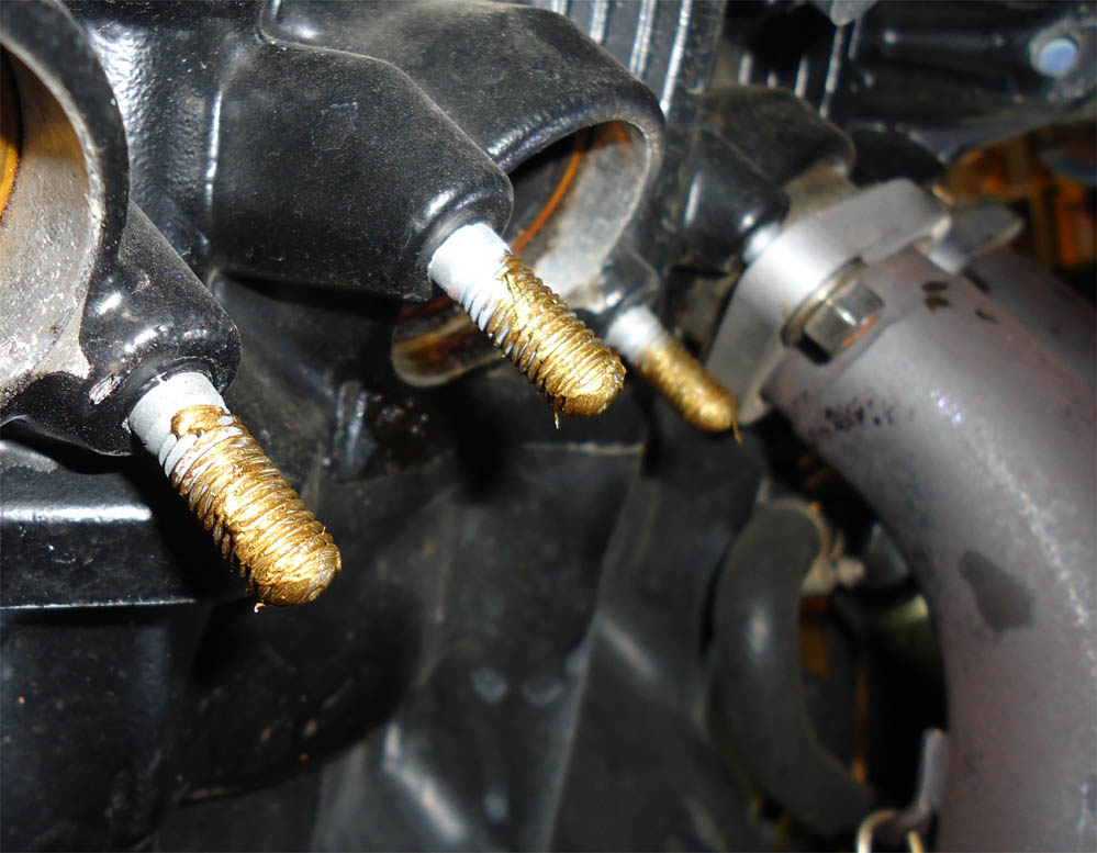 次に、車高調整ロッドのボルトが出っ張り過ぎてマフラーに干渉しています。