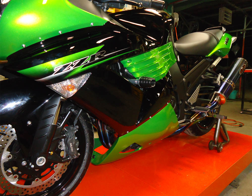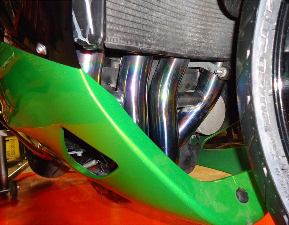 その干渉を避けるために、外側に捻って装着されてる某フルエキ。