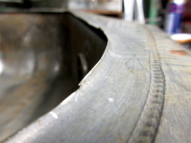 当然腐っているガソリンタンクを補修するのに半分切開。