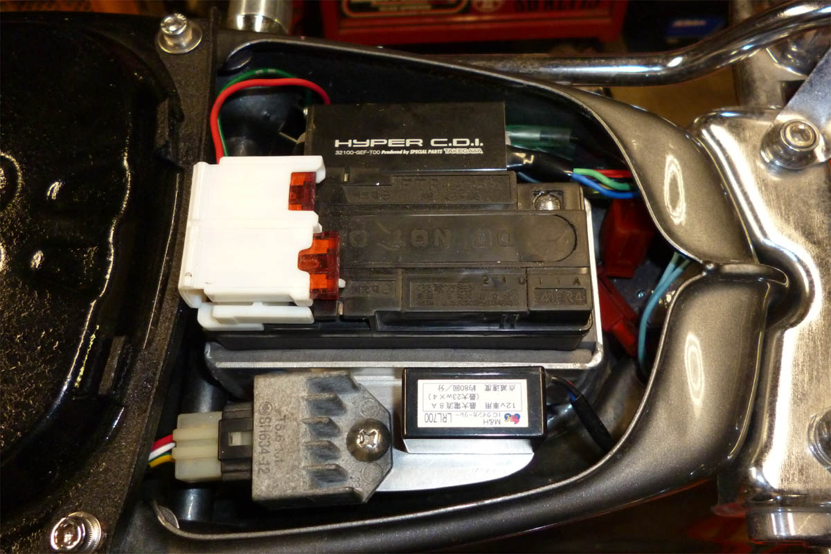 両サイドにレギュとCDIとリレーを配置するスンポーで構成してます。