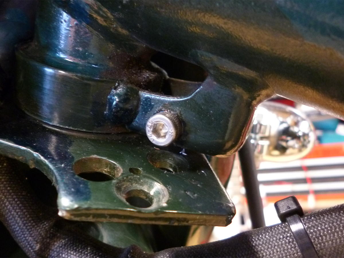 フォークアウターとメインフレームに一か所ずつステーを設置して