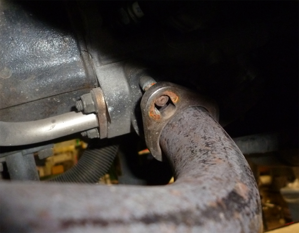 次にエキパイを外しますが、スタッドボルトが切れてます。