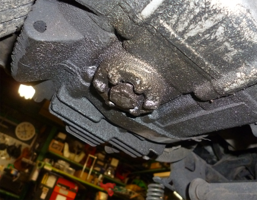 やたらとコキタナイエンジン下のドレン周辺。