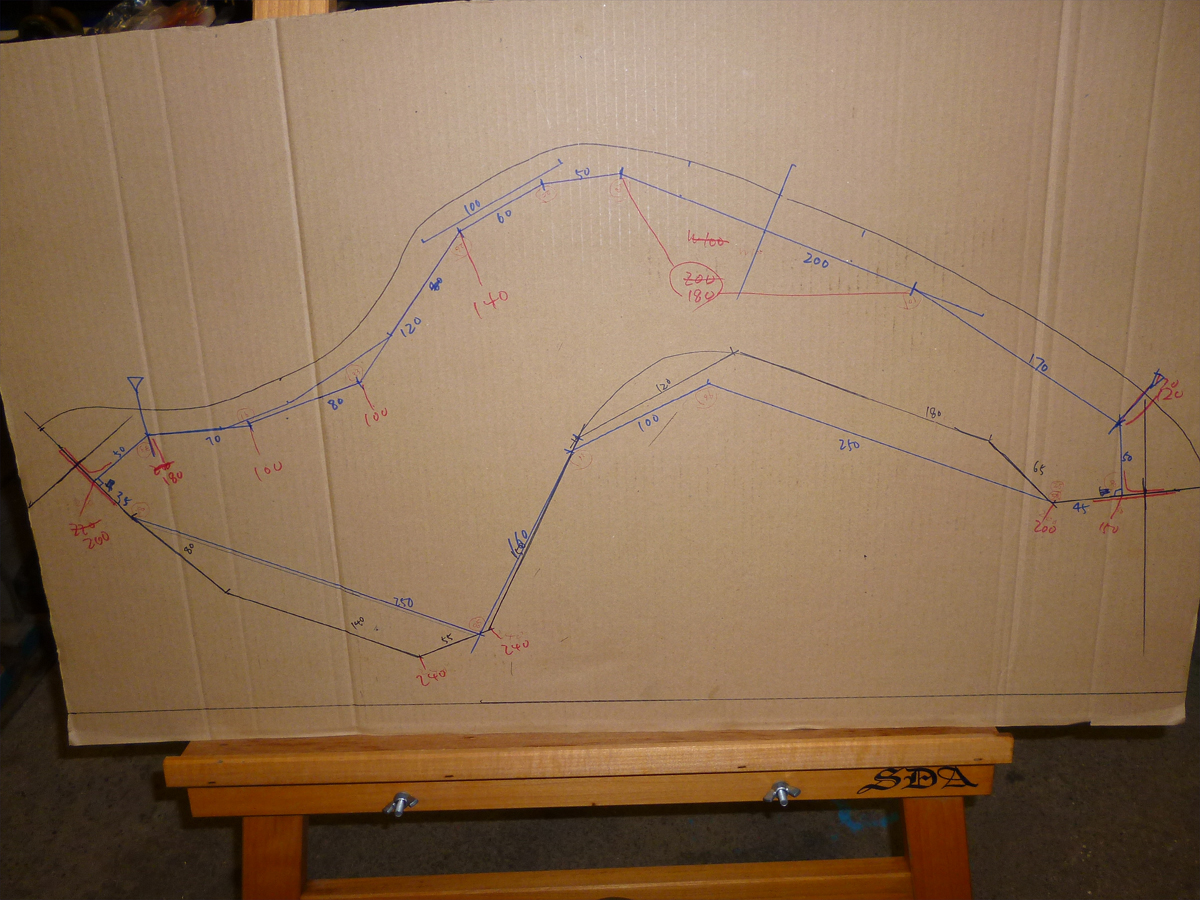 原寸大の形状を模写して図面制作して思案中。