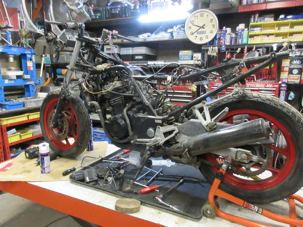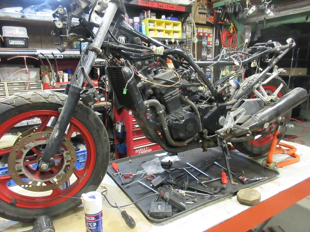 外装や部品を外したままのいかにも「整備してました」状態だが