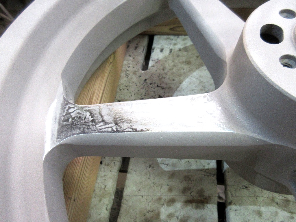 鋳造マグネシウムホイルとの相性が悪いペイント作業。
