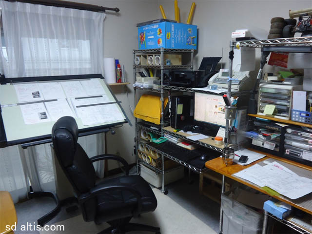 事務所のボクの机の後ろに常設して、青焼きや第二原図を展開して