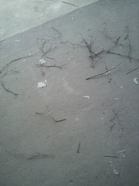 で昨日より、工場のシャッター前にチッサイ枝が散らばってまして