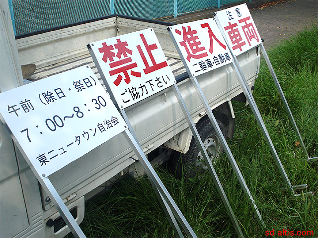 住宅街を疾走する「非住民」たちに対する協力要請看板。