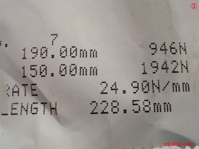 ③画像参考の試作バネは仮25.0N/mm指定で、実測参考値が24.90N/mm。