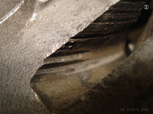 ②③ローターと接触していた跡が見受けられる、ボディの内側でございます。